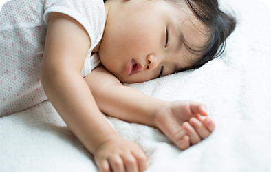 口呼吸のお子さんは、睡眠中も口が開いていることが多く、睡眠時無呼吸のリスクがあります。睡眠の質が低下するため、低身長、代謝の低下といった悪影響も心配されます。