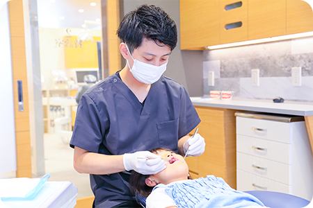 お子さんの歯科診療では、定期的に歯科医院に通う習慣を身につけ、歯を大切に思う気持ちを育てることが大切です。小さい時に養われたお口の健康に対する意識は、将来にわたってお口の健康を守ることにつながるからです。私たちは、お子さんが“歯医者さん嫌い”にならないよう、一人ひとりの気持ちに寄り添った診療の提供に努めております。どうぞ安心してお越しください。