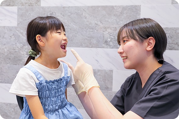 むし歯を予防するためには、お子さんのお口に合った方法で毎日丁寧にみがくことが大切です。当院では、一人ひとりの成長段階やお口の状態に合わせて、より効果的なブラッシング方法、仕上げみがきの方法について歯科衛生士がわかりやすくアドバイスいたします。